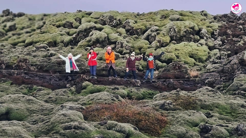 ที่นี่เป็นทุ่งมอสส์หินลาวา ที่เกิดจากการระเบิดของภูเขาไฟ Laki ในช่วงปี 1783 เป็นการระเบิดครั้งรุนแรงที่สุดครั้งหนึ่งในประวัติศาสตร์โลก หลังจากการระเบิดผ่านไปหลายร้อยปี หินลาวาพวกนี้ก็ถูกปกคลุมด้วยมอสส์สีเขียวหนานุ่ม ปกคลุมก้อนหินลาวาขรุขระ ซ้อนกันเป็นชั้นๆ เหมือนพรมหนาๆนั่นเอง