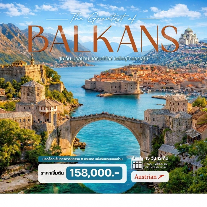 ทัวร์บอลข่านแกรนด์ทัวร์ โครเอเชีย บอสเนีย มาซิโดเนีย แอลเบเนีย คอซอวอ เซอร์เบีย มอนเตเนโกร 15 วัน 12 คืน