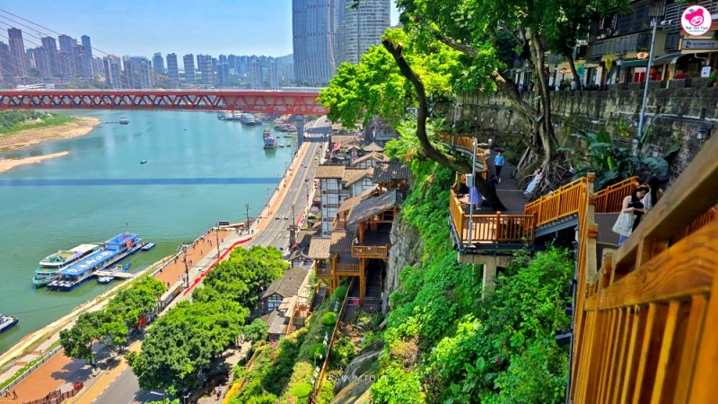 ทางเดินไม้ริมหน้าผา ชมวิวเมืองฉงชิ่งแบบพาโนรามา Daijia Alley Cliff Board Walk จีน