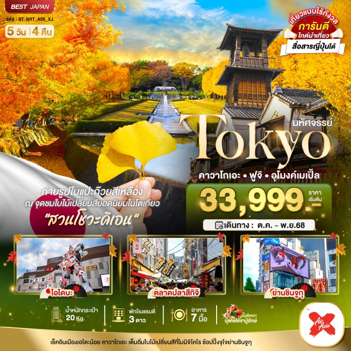 ทัวร์ญี่ปุ่น โตเกียว คาวาโกเอะ ฟูจิ อุโมงค์เมเปิ้ล 5 วัน 4 คืน